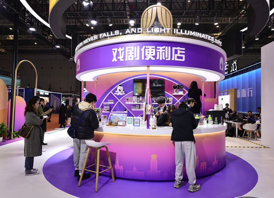 各大展团竞相推出极具互动性的打卡点:黄浦展团创新设立“戏剧便利店”,热播动画《大理寺日志》剧组受邀担任“一日店长”,将演艺大世界的活力带入现场;普陀展团引入了木棉花动漫《间谍过家家》的打卡空间;杨浦展团则带来了B站“小电视”与敦煌当代美术馆的沉浸式互动。在浙江展区,龙港展团竖起3米高的“罗小黑”装置,配合妆造达人互动,不仅吸引了动漫爱好者,也展现了文化“新三样”的出海潜力。